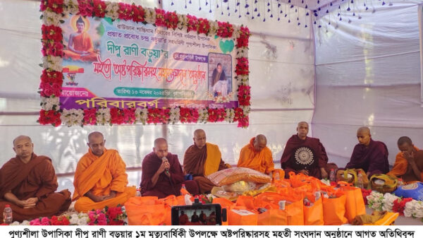 পুণ্যশীলা উপাসিকা দীপু রাণী বড়ুয়ার ১ম মৃত্যুবার্ষিকী উপলক্ষে অষ্টপরিষ্কারসহ মহতী সংঘদান অনুষ্ঠিত