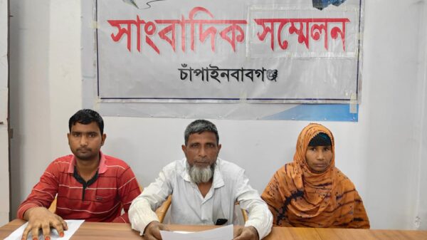 চাঁপাইনবাবগঞ্জের গোমস্তাপুরের ভুক্তভোগীর সংবাদ সম্মেলন