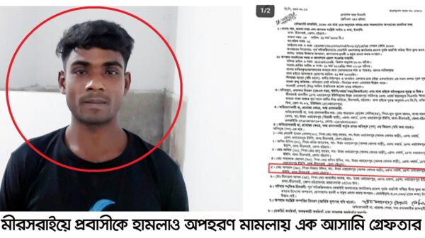 মীরসরাইয়ে প্রবাসীকে হামলা ও অপহরণ মামলায় এক আসামি গ্রেফতার