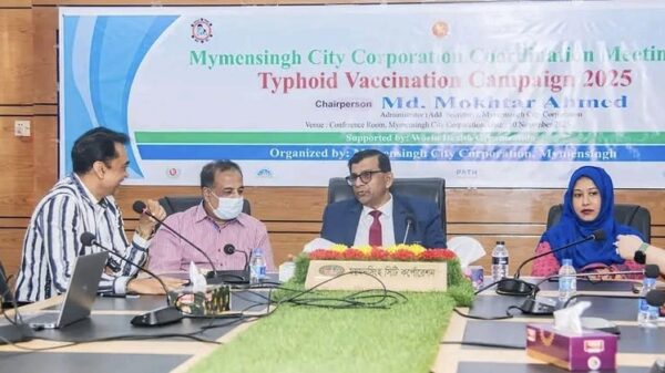মকবুলহোসেন, স্টাফ রিপোটার ময়মনসিংহে সিটি কর্পোরেশন পর্যায়ে টাইফয়েড টিকাদান ক্যাম্পেইন বিষয়ক সমন্বয় সভা আজ১০ নভেম্বর সোমবার বিশ্ব স্বাস্থ্য সংস্থার সহায়তায় এবং ময়মনসিংহ সিটি কর্পোরেশনের আয়োজনে সিটি কর্পোরেশনের সম্মেলন কক্ষে এ
