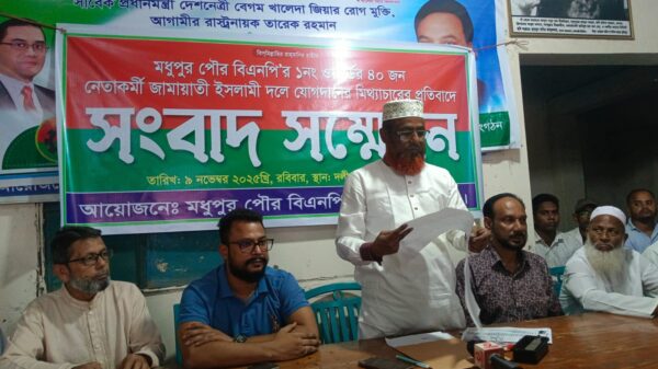 আঃ হামিদ( মধুপুর) টাঙ্গাইল প্রতিনিধিঃ টাঙ্গাইলের মধুপুর  পৌর সভার ১ নং ওয়ার্ডের ৪০ জন বিএনপির নেতাকর্মী জামায়াত ইসলামে যোগদান করেছে এমন মিথ্যা তথ্য অপপ্রচারের প্রতিবাদে সংবাদ সম্মেলন করেছেন মধুপুর পৌর