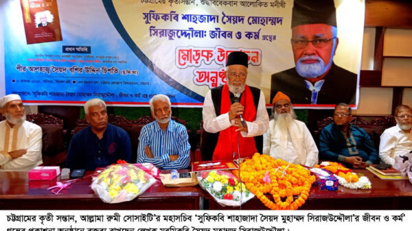 চট্টগ্রাম প্রেসক্লাবে সুফিকবি শাহজাদা সৈয়দ মোহাম্মদ সিরাজুদ্দৌলার জীবন ও কর্ম গ্রন্থের মোড়ক উন্মোচন সম্পন্ন : আধ্যাত্মিকতা ও মানবপ্রেমের আলোকধারা ছড়িয়ে দিচ্ছেন আধুনিক যুগের সুফিকবি সিরাজুদ্দৌলা