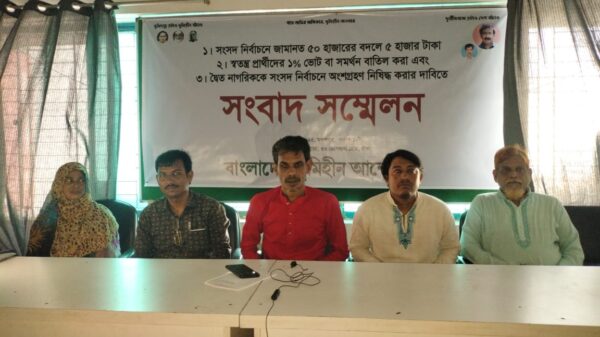 সংসদ নির্বাচনের জামানত ৫০০০ টাকা করা সহ তিন দফা দাবিতে বাংলাদেশ ভূমিহীন আন্দোলনের সংবাদ সম্মেলন করেন। আজ ১১ নভেম্বর ২০২৫, মঙ্গলবার সকাল ১১ টায় ১০-বি, মেহেরবা প্লাজা, ৩৩ তোপখানা রোড, ঢাকায়
