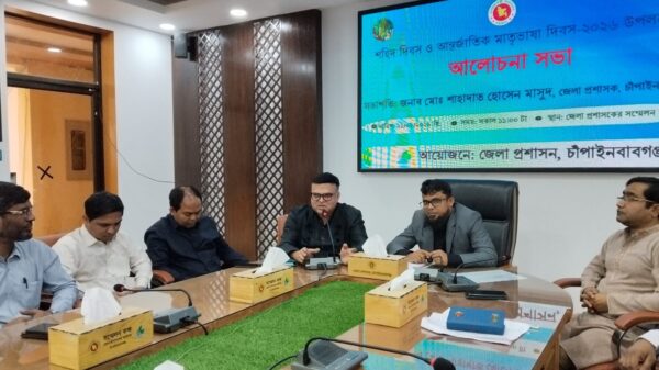 মাহিদুল ইসলাম ফরহাদচাঁপাইনবাবগঞ্জ জেলা প্রতিনিধি মহান শহিদ দিবস ও আন্তর্জাতিক মাতৃভাষা দিবস-২০২৬ উপলক্ষে চাঁপাইনবাবগঞ্জে আলোচনা সভা অনুষ্ঠিত হয়েছে। চাঁপাইনবাবগঞ্জ জেলা প্রশাসন আয়োজনে ২১ ফেব্রুয়ারি শনিবার সকাল ১১টায় জেলা প্রশাসকের সম্মেলন