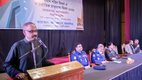 মকবুল হোসেন, ময়মনসিংহ জেলা প্রতিনিধি ময়মনসিংহে মহান শহিদ দিবস ও আন্তর্জাতিক মাতৃভাষা দিবস-২০২৬ যথাযোগ্য মর্যাদা ও ভাবগাম্ভীর্যের মধ্য দিয়ে উদযাপিত হয়েছে। দিবসটি উপলক্ষ্যে আলোচনা সভা, সাংস্কৃতিক অনুষ্ঠান এবং চিত্রাঙ্কন প্রতিযোগিতা
