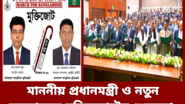 নিজস্ব প্রতিবেদক: নবনিযুক্ত মাননীয় প্রধানমন্ত্রী ও বিএনপির চেয়ারম্যান তারেক রহমান ও সরকারের সদস্যবৃন্দকে আন্তরিক শুভেচ্ছা ও অভিনন্দন জানিয়েছেন মুক্তিজোটের সংগঠন প্রধান আবু লায়েস মুন্না ও সাধারণ সম্পাদক মোঃ শাহজামাল আমিরুল।
