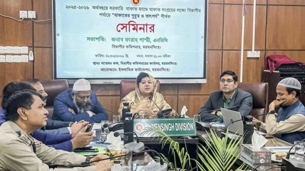 মকবুল হোসেন,স্টাফ রিপোর্টার ২০২৫-২৬ অর্থবছরে সরকারি যাকাত ফান্ডে যাকাত সংগ্রহের লক্ষ্যে বিভাগীয় পর্যায়ে ‘যাকাতের গুরুত্ব ও তাৎপর্য’ শীর্ষক এক সেমিনার অনুষ্ঠিত হয়।আজ ১৮ফেব্রুয়ারি বুধবার ময়মনসিংহ বিভাগীয় কমিশনার কার্যালয়ের সম্মেলন কক্ষে