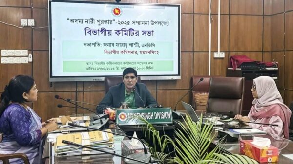 মকবুল হোসেন,স্টাফ রিপোর্টার অদম্য নারী পুরস্কার-২০২৫ সম্মাননা উপলক্ষ্যে বিভাগীয় কমিটির সভা আজ ১৭ ফেব্রুয়ারি মঙ্গলবার ময়মনসিংহ বিভাগীয় কমিশনার কার্যালয়ের সম্মেলন কক্ষে অনুষ্ঠিত হয়।এতে সভাপতিত্ব করেন অতিরিক্ত বিভাগীয় কমিশনার (সার্বিক) কাজী