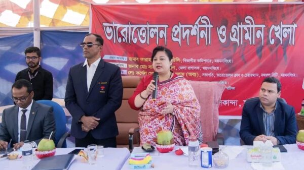 মকবুল হোসেন,স্টাফ রিপোর্টার ময়মনসিংহে ভারোত্তোলন প্রদর্শনী ও গ্রামীণ খেলাকে ঘিরে এক প্রাণবন্ত আয়োজন অনুষ্ঠিত হয়েছে।এতে প্রধান অতিথি হিসেবে উপস্থিত ছিলেন ময়মনসিংহ বিভাগীয় কমিশনার ফারাহ শাম্মী, এনডিসি। অনুষ্ঠানে সভাপতিত্ব করেন ময়মনসিংহ