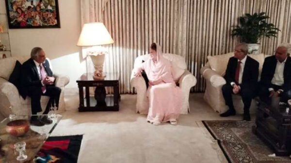 সাবেক প্রধানমন্ত্রী ও বিএনপি চেয়ারপারসন খালেদা জিয়ার খোঁজখবর নিতে তার বাসায় গেছেন ঢাকায় সফররত পাকিস্তানের উপ-প্রধানমন্ত্রী ও পররাষ্ট্রমন্ত্রী ইসহাক দার। রোববার (২৪ আগস্ট) সন্ধ্যা ৬টা ৫৬ মিনিটে রাজধানীর গুলশানে খালেদা
