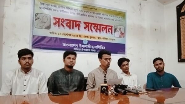 মোঃ নুরুন্নবী পাবনা প্রতিনিধিঃ পাবনার সাঁথিয়া উপজেলার মিয়াপুর হাজী জসীম উদ্দিন স্কুল এন্ড কলেজে ছাত্রশিবির নেতাকর্মীদের ওপর বর্বরোচিত হামলা এবং মিথ্যা অভিযোগের বিরুদ্ধে তীব্র প্রতিবাদ জানিয়ে সংবাদ সম্মেলন করেছে বাংলাদেশ