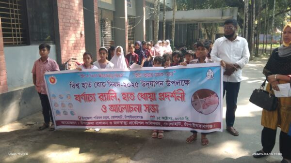 এম. এস. আই শরীফ, ভোলাহাট (চাঁপাইনবাবগঞ্জ) প্রতিনিধিঃ চাঁপাইনবাবগঞ্জের ভোলাহাটে বিশ্ব হাত ধোয়া দিবস যথাযোগ্য মর্যাদায় বুধবার (১৫ অক্টোবর ২০২৫) সকালে ১১টায় উপজেলা প্রশাসন ও জনস্বাস্থ্য প্রকৌশল অধিদপ্তরের আয়োজনে উপজেলা চত্বরে