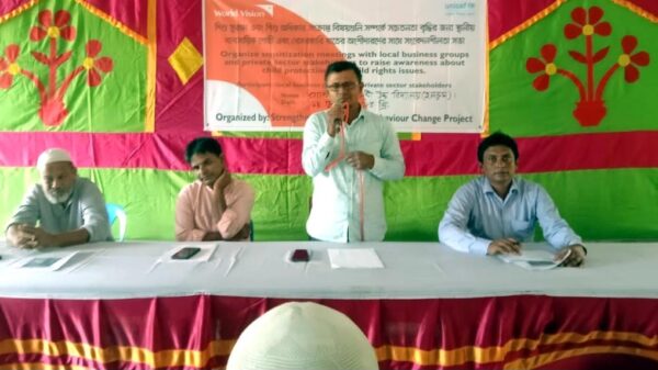 মোঃ বুলবুল ইসলাম, কুড়িগ্রাম প্রতিনিধিঃ কুড়িগ্রামের নাগেশ্বরীতে ইউনিসেফের আর্থিক সহায়তায় এসএসবিসি প্রকল্পের মাধ্যমে বাল্যবিয়ে বন্ধে, শিশু সুরক্ষা এবং শিশু অধিকার সংক্রান্ত বিষয়গুলি সম্পর্কে সচেতনতা বৃদ্ধির জন্য স্থানীয় ব্যবসায়িক গোষ্ঠী এবং