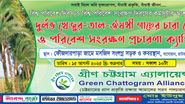 রাউজানে খেজুর-তাল-ঔষধি গাছের চারা রোপন-বিতরণ ও পরিবেশ সংরক্ষণ প্রচারণা ক্যাম্পিং অনুষ্ঠিত