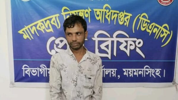 মকবুল হোসেন,স্টাফ রিপোটার মাদকদ্রব্য নিয়ন্ত্রণ অধিদপ্তর, বিভাগীয় গোয়েন্দা কার্যালয়, ময়মনসিংহ এঁর সহকারী পরিচালক মোঃ কাওসারুল হাসান রনি নেতৃত্বে আগস্ট সোমবার ভোর৪টায় ঈশ্বরগঞ্জ থানাধীন রায়ের বাজার আঠারো বাড়ী এলাকায় নান্দাইল চৌরাস্তা