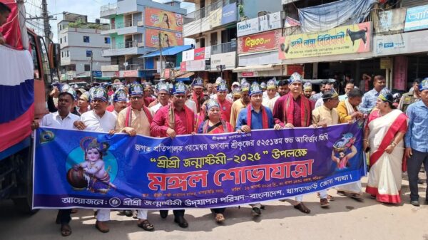 আরিফুল ইসলাম মহিন, খাগড়াছড়ি প্রতিনিধি: ভগবান শ্রীকৃষ্ণের ৫২৫১তম আবির্ভাব তিথি উপলক্ষে খাগড়াছড়িতে জন্মাষ্টমী উদযাপন পরিষদের উদ্যোগে শনিবার (১৬ আগস্ট) বর্ণাঢ্য মঙ্গল শোভাযাত্রা অনুষ্ঠিত হয়েছে। সকালে শ্রীশ্রী লক্ষ্মী নারায়ণ মন্দির প্রাঙ্গণ
