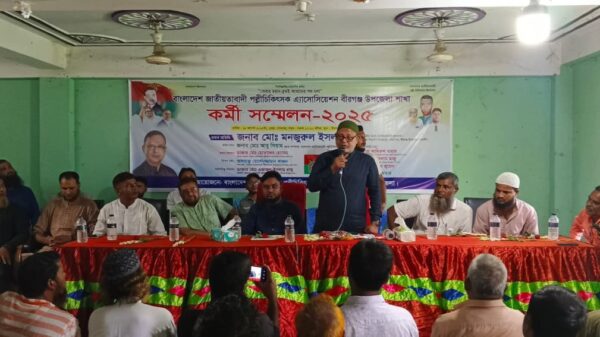 রনজিৎ সরকার রাজ বীরগঞ্জ দিনাজপুর প্রতিনিধি :দিনাজপুরের বীরগঞ্জে বাংলাদেশ জাতীয়তাবাদী পল্লী চিকিৎসক অ্যাসোসিয়েশন উপজেলা শাখার কর্মী সম্মেলন অনুষ্ঠিত হয়েছে। সোমবার (১৮ আগস্ট) এ কর্মী সম্মেলন অনুষ্ঠিত হয়। সম্মেলনে প্রধান অতিথি
