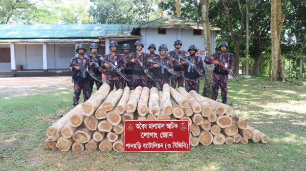 আরিফুল ইসলাম মহিন, খাগড়াছড়ি প্রতিনিধি : খাগড়াছড়ির পানছড়িতে বর্ডার গার্ড বাংলাদেশ (৩ বিজিবি) এর বিশেষ অভিযানে বিপুল পরিমাণ অবৈধ সেগুন কাঠ জব্দ করা হয়েছে। বিজিবির সূত্রে জানা যায়, গত ২৫