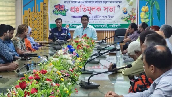 মোঃ মোবারক হোসেন নাদিমস্টাফ রিপোর্টার আসন্ন Pohela Boishakh উদযাপন উপলক্ষে মনোহরদী উপজেলা পরিষদে এক প্রস্তুতিমূলক সভা অনুষ্ঠিত হয়েছে।উপজেলা প্রশাসনের আয়োজনে অনুষ্ঠিত এ সভায় সভাপতিত্ব করেন মাননীয় Upazila Nirbahi Officer। সভায়