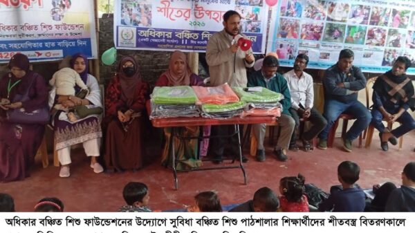 স ম জিয়াউর রহমান, চট্টগ্রাম থেকে :চট্টগ্রামের অধিকার বঞ্চিত শিশু ফাউন্ডেশনের উদ্যোগে আজ ১২ জানুয়ারি, সোমবার, বিকাল পাঁচটায় নগরীর লেকসিটি হাউজিং সোসাইটির অধিকার বঞ্চিত শিশু পাঠশালার সুবিধাবঞ্চিত শিক্ষার্থীদের মাঝে শীতবস্ত্র