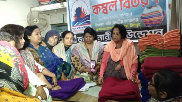 সাঈদ চৌধুরী: জাগো নারী ফাউন্ডেশনের উদ্যোগে গত ১০ জানুয়ারি ২০২৬ তারিখ বিকাল ৪ ঘটিকায় রাজধানীর রুপনগরস্থ কেন্দ্রীয় কার্যালয়ে শীতার্ত গরীব ও দুস্থ মানুষের মাঝে কম্বল বিতরন করা হয়। জাগো নারী