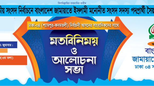 ঢাকা,১৫ আগস্ট, ২০২৫ রোজ : শুক্রবার প্রিয় সহকর্মী প্রিন্ট/ইলেকট্রনিক / অনলাইন পোর্টালে নিয়োজিত সাংবাদিক(শ্যামপুর- কদমতলী এলাকার)। সালাম ও শুভেচ্ছা নিবেন। আসন্ন ত্রয়োদশ জাতীয় সংসদ নির্বাচনে বাংলাদেশ জামায়াতে ইসলামী মনোনীত সংসদ