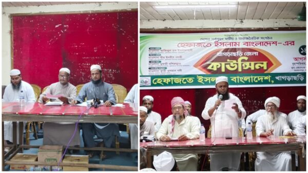 আরিফুল ইসলাম মহিন, খাগড়াছড়ি প্রতিনিধি: দেশের সর্ববৃহৎ ধর্মীয় ও অরাজনৈতিক সংগঠন হেফাজতে ইসলামের খাগড়াছড়ি জেলা কাউন্সিল অনুষ্ঠিত হয়েছে। বৃহস্পতিবার (১৪ আগস্ট) বিকাল ৪টায় শহরের মহাজনপাড়া এলাকার এফএনএফ কমিউনিটি সেন্টারে এ