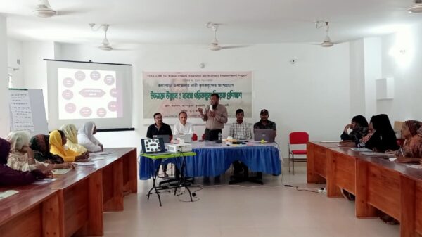 কলাপাড়া(পটুয়াখালী)প্রতিনিধি : পটুয়াখালীর কলাপাড়ার কুয়াকাটায় নারী কৃষকদের অংশগ্রহণে (দুইদিন ব্যাপী) উদ্যোক্তা উন্নয়ন ও ব্যবসা পরিকল্পনা বিষয়ক প্রশিক্ষণ কর্মশালা অনুষ্ঠিত হয়েছে। বেসরকারী উন্নয়ন সংস্থা আভাস এর আয়োজনে বুধবার(৬ আগস্ট) সকাল ১০