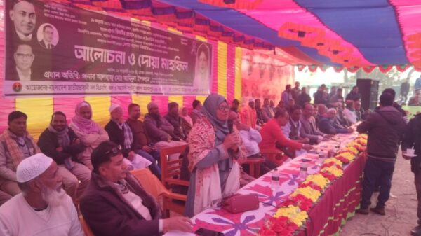 এম. এস. আই শরীফ, ভোলাহাট (চাঁপাইনবাবগঞ্জ) প্রতিনিধিঃ চাঁপাইনবাবগঞ্জের ভোলাহাট উপজেলার ২নং গোহালবাড়ী ইউনিয়নের ৬নং ওয়ার্ড খালেআলমপুর দক্ষিণপাড়া মাঠ প্রাঙ্গণে (১৯ জানুয়ারী ২০২৬) সোমবার বাদ মাগরিব দেশমাতা বেগম খালেদা জিয়ার বিদেহী