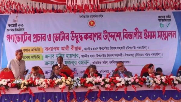 মকবুল হোসেন, স্টাফ রিপোটার ময়মনসিংহ বিভাগীয় প্রশাসন ও বিভাগীয় ইসলামিক ফাউণ্ডেশনের যৌথ আয়োজনেআজ ১৯ জানুয়ারি সোমবার বিকালে নগরীর সার্কিট হাউজ মাঠে মতবিনিময় সভা অনুষ্ঠিত হয়েছে। গণভোটের প্রচারণা ও ভোটার উদ্বুদ্ধকরণের