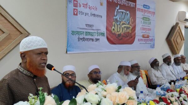 মাহিদুল ইসলাম ফরহাদচাঁপাইনবাবগঞ্জ জেলা প্রতিনিধি চাঁপাইনবাবগঞ্জে বিশিষ্ট ব্যক্তিদের সম্মানে ইফতার মাহফিল অনুষ্ঠিত হয়েছে। (৯ মার্চ) সোমবার বিকাল ৫টায় বাংলাদেশ জামায়াতে ইসলামীর চাঁপাইনবাবগঞ্জ জেলা শাখার উদ্যোগে টাউন ক্লাব মিলনায়তনে এ ইফতার