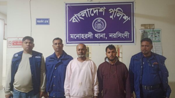মোঃ মোবারক হোসেন নাদিম স্টাফ রিপোর্টার, মনোহরদী (নরসিংদী) মনোহরদী থানা পুলিশের বিশেষ অভিযানে ৭ বছরের সাজাপ্রাপ্ত এবং ৬ মাসের সাজাপ্রাপ্ত ২জন আসামি গ্রেফতার করা হয়েছে। ১৯/১২/২০২৫ তারিখ রাত ২২.০০ ঘটিকা