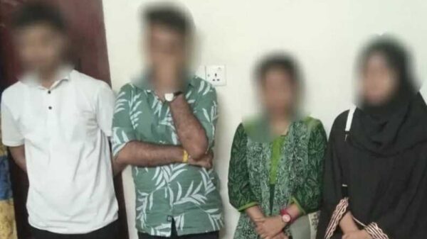 অনলাইন ডেস্ক সিলেট নগরীর শিবগঞ্জে একটি আবাসিক হোটেল থেকে চার তরুণ-তরুণীকে আটক করেছে গোয়েন্দা (ডিবি) পুলিশ। বৃহস্পতিবার বিকেল ৪টার দিকে শিবগঞ্জ ‘গ্র্যান্ড সাওদা’ আবাসিক হোটেলে অভিযান চালিয়ে তাদেরকে আটক করা