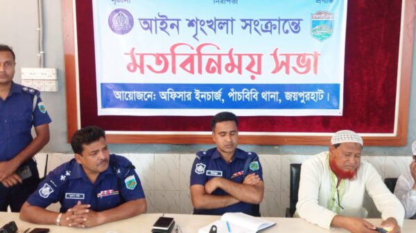 পাঁচবিবি থানা পুলিশের আইন শৃংখলা বিষয়ক মতবিনিময়
