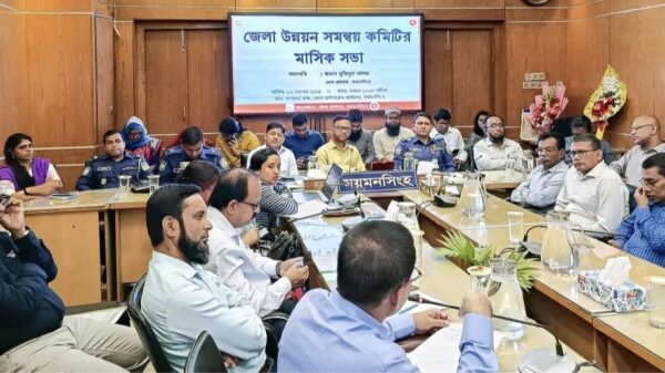 ময়মনসিংহ জেলা উন্নয়ন সমন্বয় কমিটির মাসিক সভা আজ ১৬ নভেম্বর রবিবার ময়মনসিংহ জেলা প্রশাসনের আয়োজনে দপ্তর কার্যালয়ের সম্মেলন কক্ষে এ সভা অনুষ্ঠিত হয়। উক্ত সভায় সভাপতি হিসেবে উপস্থিত ছিলেন ময়মনসিংহ জেলা প্রশাসক মুফিদুল আলম।