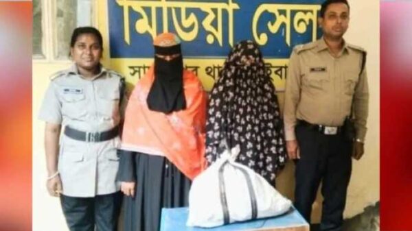 বোরকার ভেতরে পেটে স্কচটেপে বাঁধা ৫০ বোতল ফেন্সিডিল, দুই নারী ধরা