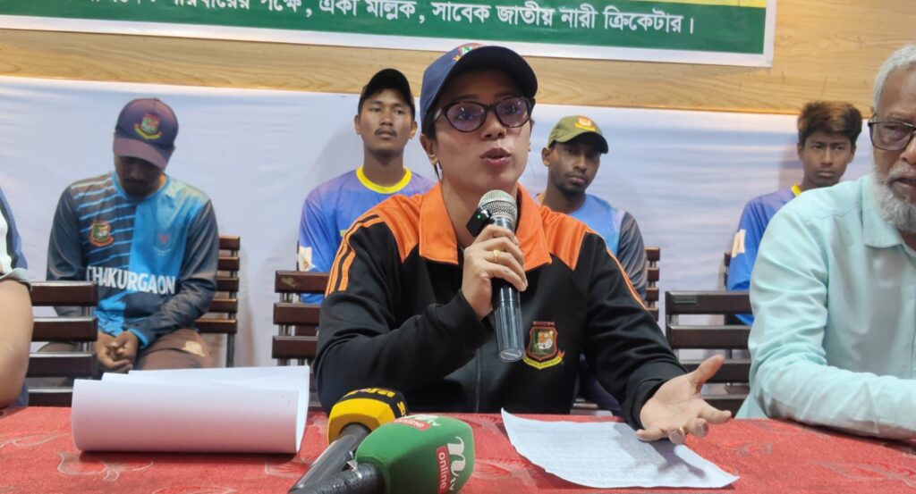 নুরে আলম শাহ,ঠাকুরগাঁও প্রতিনিধি: ঠাকুরগাঁও পৌরসভার ৯ নম্বর ওয়ার্ডের গোবিন্দনগর উত্তর পাড়া এলাকায় একটি কালীমন্দির ও বসতভিটা জোরপূর্বক দখলের অভিযোগ তুলে সংবাদ সম্মেলন করেছেন জাতীয় দলের সাবেক নারী ক্রিকেটার একা মল্লিক। তিনি প্রশাসনের জরুরি হস্তক্ষেপ ও ন্যায়বিচার দাবি করেন।সোমবার (৩০ মার্চ) দুপুরে ঠাকুরগাঁও প্রেসক্লাব-এর হলরুমে আয়োজিত সংবাদ সম্মেলনে একা মল্লিক লিখিত বক্তব্য উপস্থাপন করেন।লিখিত বক্তব্যে তিনি জানান, ২০১৮ সালের ১৬ আগস্ট তার ভাই অনিক মল্লিক গোবিন্দনগর মৌজার ২৬৩৪ নম্বর দাগের ২.৫০ শতক জমি বৈধভাবে ক্রয় করেন।