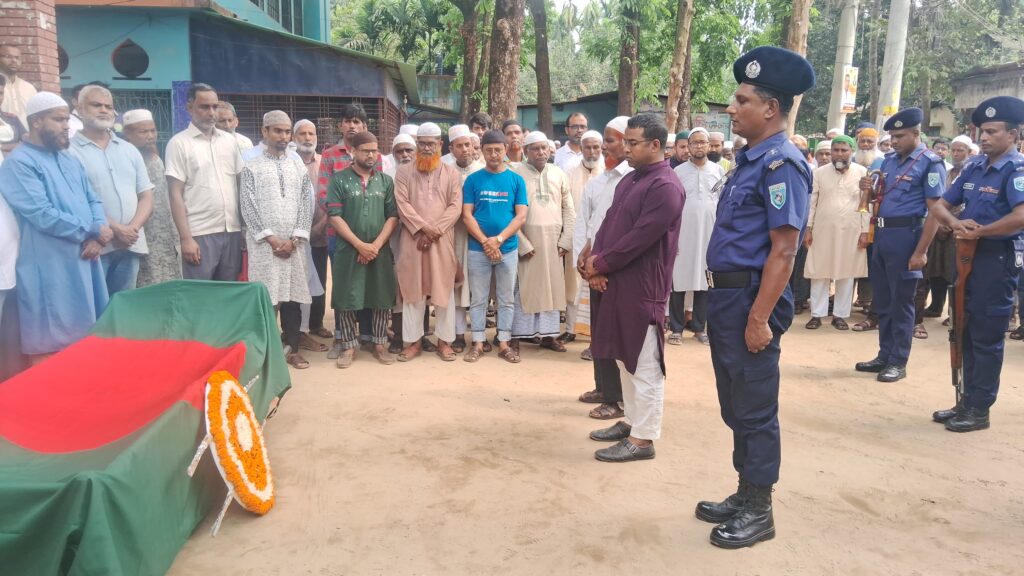 নুরে আলম শাহ, ঠাকুরগাঁও প্রতিনিধি //ঠাকুরগাঁওয়ে গভীর শ্রদ্ধা, রাষ্ট্রীয় ও পূর্ণ মর্যাদায় চিরনিদ্রায় শায়িত হলেন জাতির শ্রেষ্ঠ সন্তান বীর মুক্তিযোদ্ধা আব্দুর রউফ। শনিবার( ৪ এপ্রিল ) ঠাকুরগাঁওয়ে তাঁর শহরস্থ সরকার পাড়া জামে মসজিদ প্রাঙ্গণে ১ম জানাজার নামাজ প্রাক্কালে গার্ড অব অনার ও শ্রদ্ধাঞ্জলি দেওয়ার প্রস্তুতি নেয়া হয়।বীর মুক্তিযোদ্ধা আব্দুর রউফ এর কফিন জানাজা স্থলে জাতীয় পতাকায় আবৃত করা হয়। সেখানে প্রশাসনের উদ্যোগে সদর উপজেলা সহকারী কমিশনার (ভূমি) মোঃ আশাদুল হক এর নেতৃত্বে জেলা পুলিশের একটি চৌকস দল তাঁকে সশস্ত্র সালাম (গার্ড অব অনার) প্রদান করেন। বিউগলের করুণ সুরে এক শোকাতুর পরিবেশের সৃষ্টি হয়। এরপর স্থানীয় প্রশাসনের কর্মকর্তা ও বীর মুক্তিযোদ্ধাগণ মরহুমের কফিনে পুষ্পস্তবক অর্পণ করে শেষ শ্রদ্ধা নিবেদন করেন।