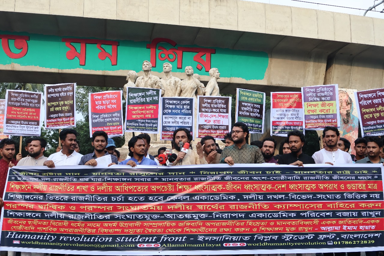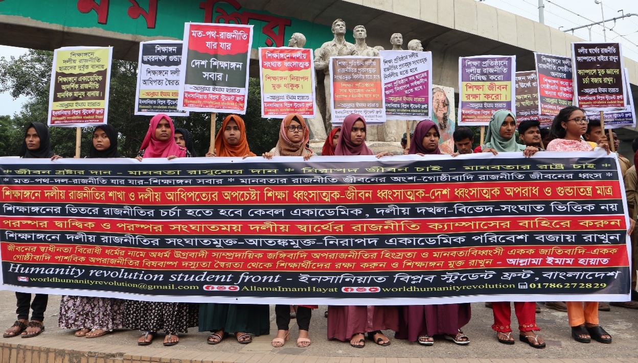 শিক্ষা প্রতিষ্ঠানে সকল প্রকার দলীয় রাজনীতি নিষিদ্ধের দাবি জানিয়ে সারা দেশ ব্যাপী আন্দোলন করছেন আল্লামা ইমাম হায়াত প্রবর্তিত ইনসানিয়াত বিপ্লব বাংলাদেশ স্টুডেন্ট ফ্রন্ট।